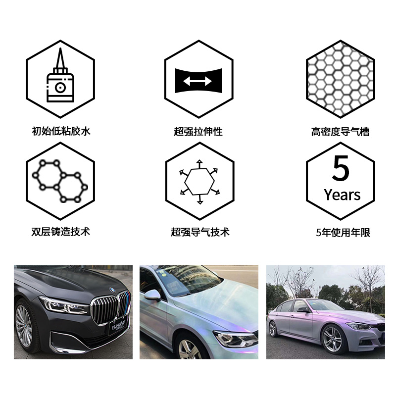 产品特征:可拉伸,可移除,抗 UV,防腐蚀,防水,易清洁,易保养,保护车漆,抵御一般轻微性划痕、刮蹭,磨损等。